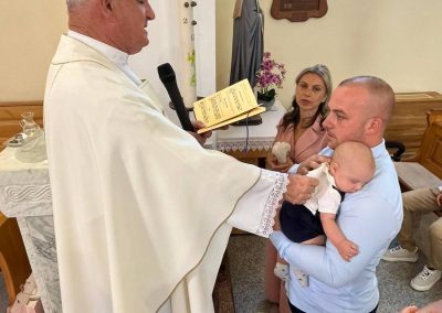 Župnik don Rajko Marković, krstio je u subotu, 2. kolovoza 2025. u župnoj crkvi Presvetoga Srca Isusova u Bijelom Polju u 16,00 sati šesto dijete bračnog para Marina Škobića i Danijele r. Šutalo.