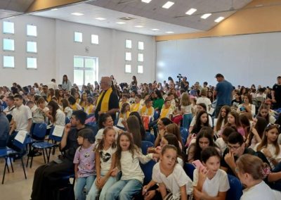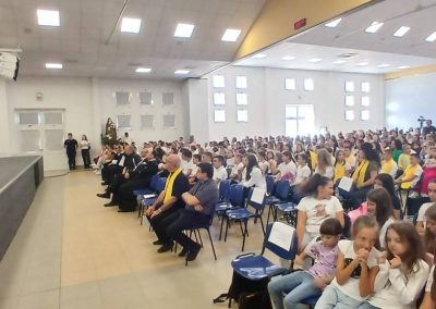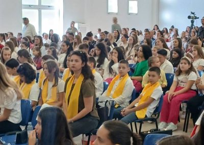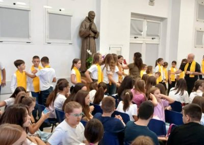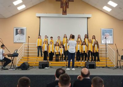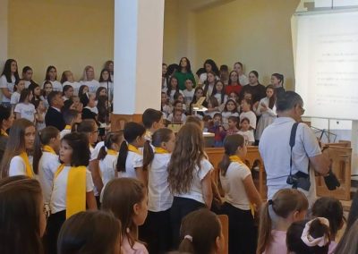 Najprije je sve nazočne pozdravio voditelj programa don Antonio Zirdum, biskupov tajnik i kancelar, pozdravio biskupa Petra, gen. vikara don Nikolu, svećenike, časne sestre, voditelje zborova, pjevače i sve nazočne, zatim je krenuo s najavom zborova. Svi su nazočni zborovi, njih 15 s 300 djece nastupili s po jednom skladbom na oduševljenje svega okupljenog puka Božjega.