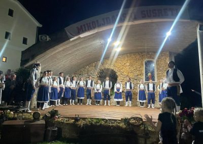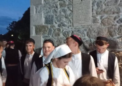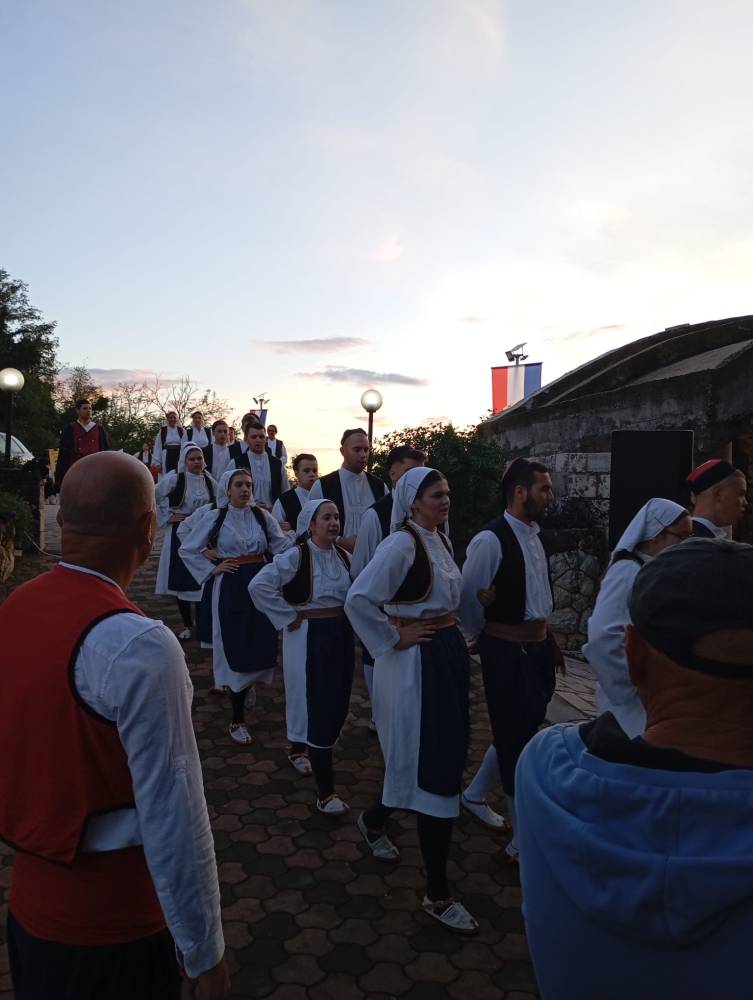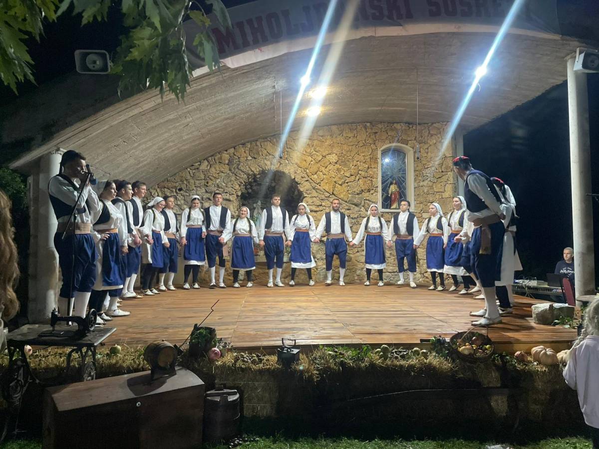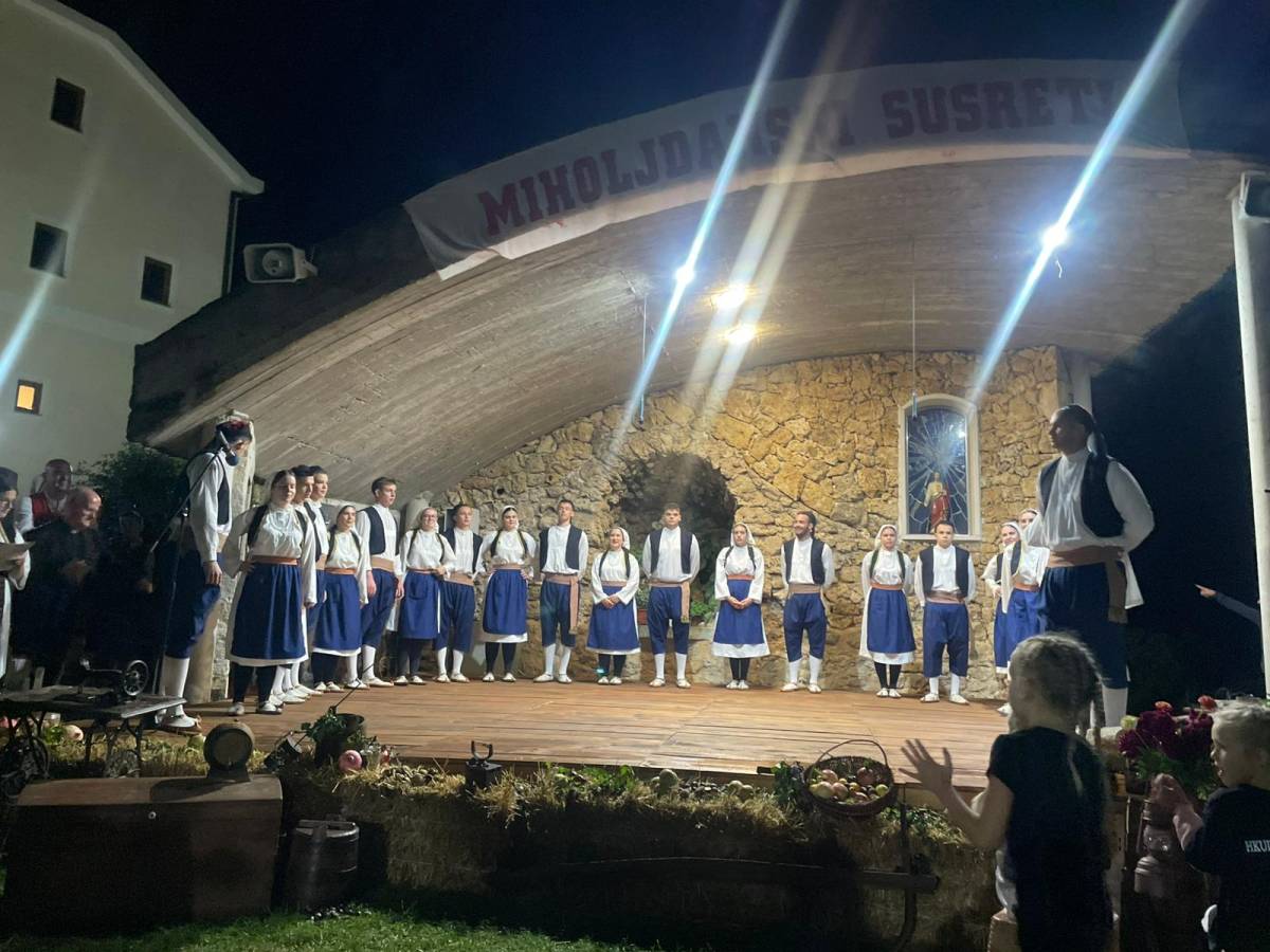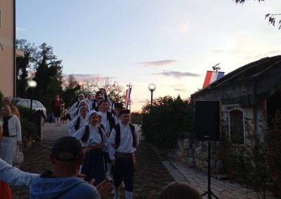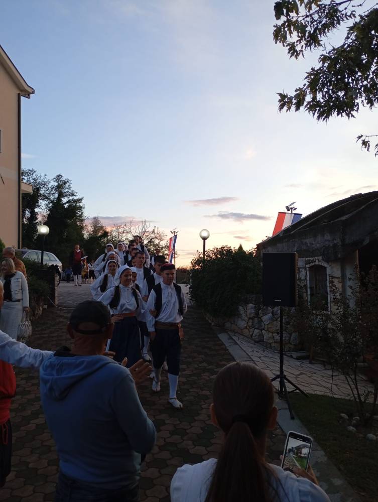 Nakon najave, naše je Društvo nastupilo na pozornici i pobralo simpatije i više puta ponovljeni pljesak okupljenog mnoštva, na kraju nastupa župnik je uskočio k nama na pozornicu gdje smo napravili zajedničku fotografiju. Poslije nastupa otišli smo na domjenak priređen u prikladnom prostoru, neki se presvukli i čekali kraj službenog programa.