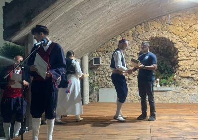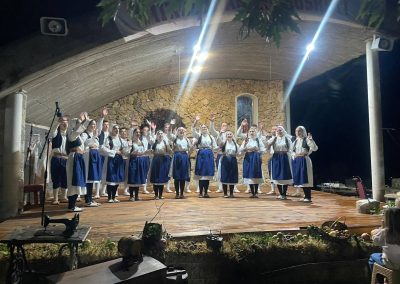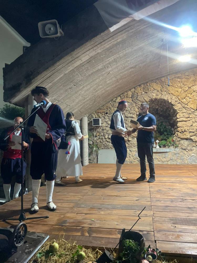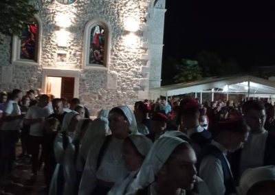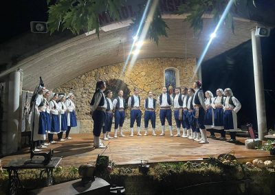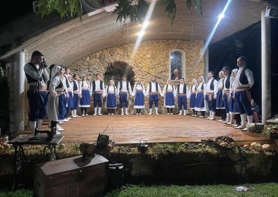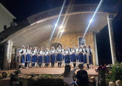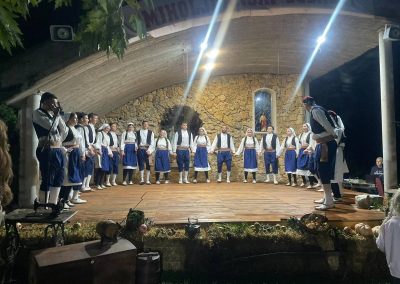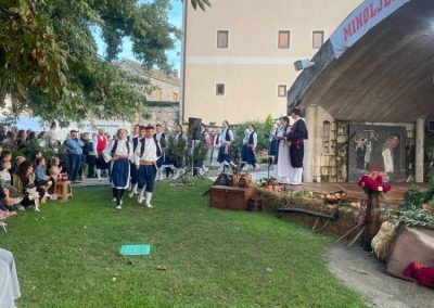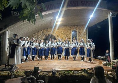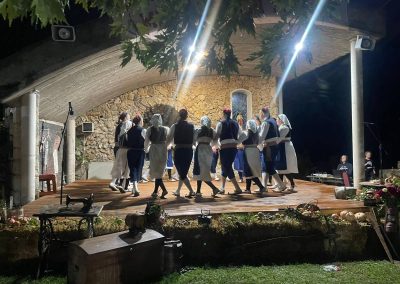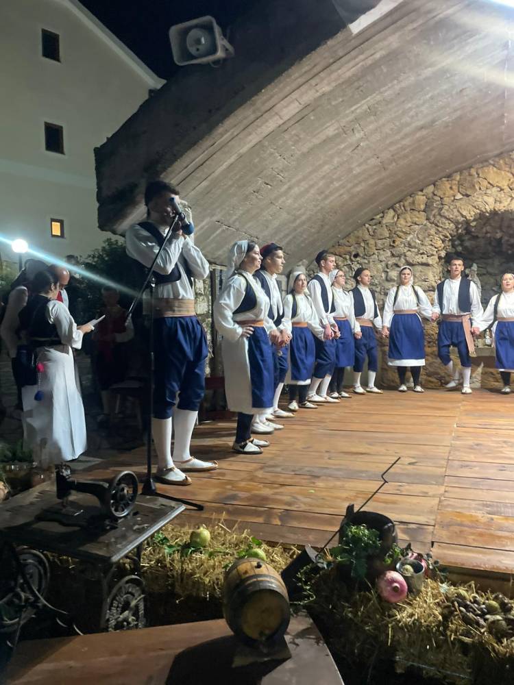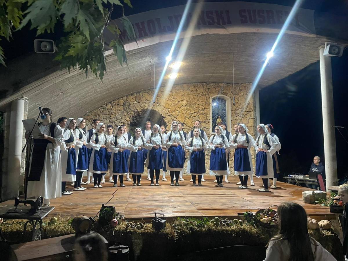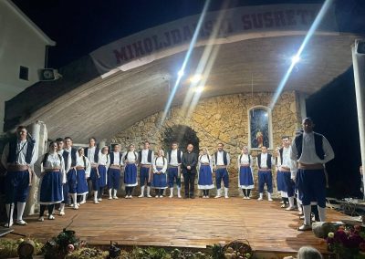 Nakon najave, naše je Društvo nastupilo na pozornici i pobralo simpatije i više puta ponovljeni pljesak okupljenog mnoštva, na kraju nastupa župnik je uskočio k nama na pozornicu gdje smo napravili zajedničku fotografiju. Poslije nastupa otišli smo na domjenak priređen u prikladnom prostoru, neki se presvukli i čekali kraj službenog programa.